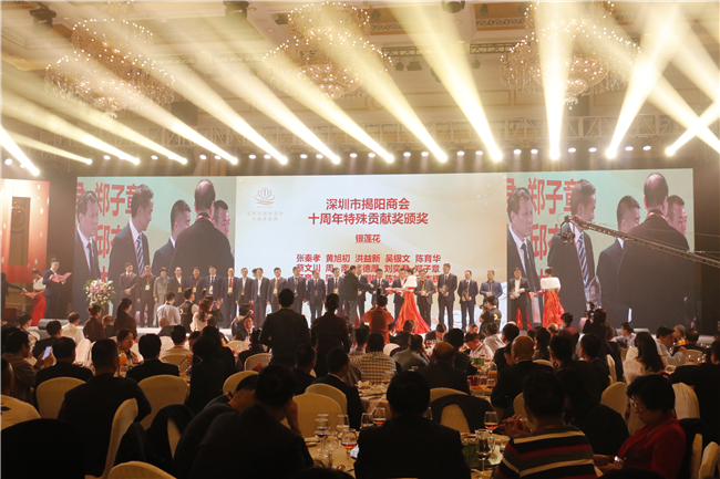 12月28日,应深圳市揭阳商会的邀请,我会会长郑志才、常务副理事长陈树标等一行应邀出席深圳市揭阳商会十周年庆典。